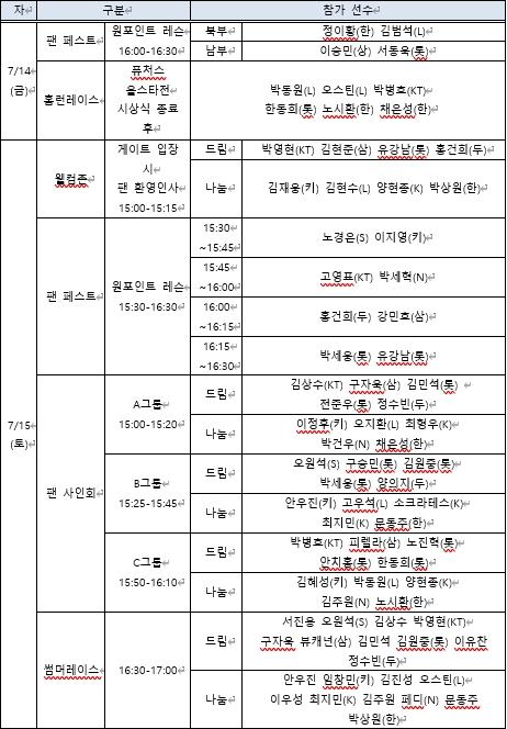 올스타전 본 경기가 열리는 15일(토)에는 먼저 오후 3시부터 15분간 드림과 나눔 양 팀 선수들이 사직 야구장으로 입장하는 팬들을 직접 맞이한다. 드림의 KT 박영현, 삼성 김현준, 롯데 유강남, 두산 홍건희는 1루 입장 게이트에서, 나눔의 키움 김재웅, LG 김현수, KIA 양현종, 한화 박상원은 3루 입장 게이트에서 팬들을 환영한다. 같은 시각 외야 그라운드에선 30명의 올스타 선수들이 3개 조로 나뉘어 팬 사인회를 개최한다.