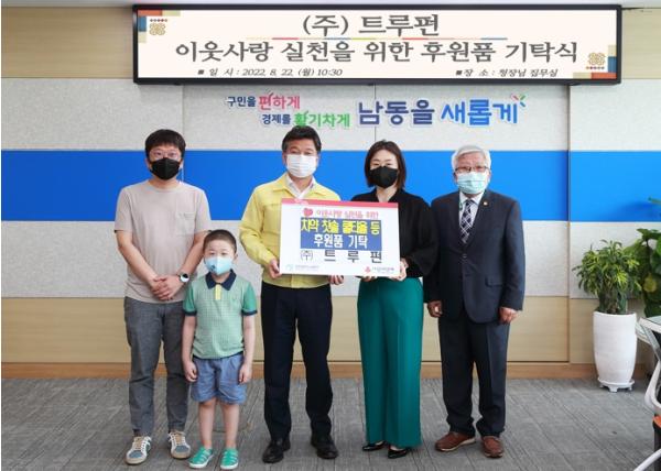 박종효 남동구청장은 “기부는 주변의 이웃을 한 번이라도 더 돌아볼 때 시작 된다”라며 “나눔 실천에 동참해주신 ㈜트루펀에 감사드리며, 저소득층에 잘 배부될 수 있도록 하겠다”라고 밝혔다.