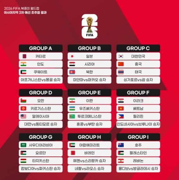 2026 FIFA 북중미월드컵 아시아 2차예선 조추첨 결과