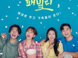 팝콘이 흩날리는 파란 배경에서 네 명이 진정한 가족이 되기 위해 좌충우돌 여정을 본격 시작했음을 짐작게 한다.
