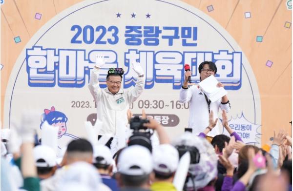 지난 14일 중랑구 중랑구립잔디운동장에서 ‘2023 중랑구민 한마음 체육대회’가 열렸다. 15년 만에 돌아온 ‘중랑구민 한마음 체육대회’는 16개 동 선수와 응원단 3천여 명이 참여하는 소통과 화합의 장으로 꾸려졌다.