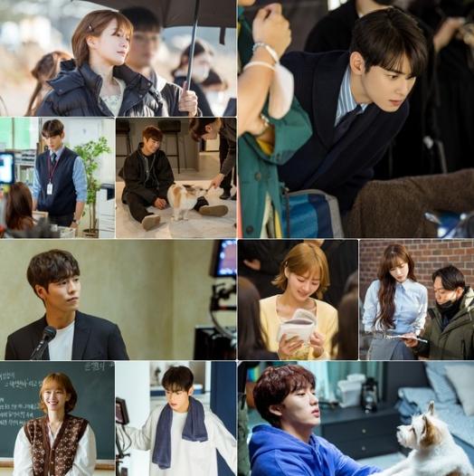 5회 방송을 앞두고 8일(오늘) ‘오늘도 사랑스럽개’ 측은 배우 차은우(진서원 역), 박규영(한해나 역), 이현우(이보겸 역), 윤현수(최율 역), 이서엘(윤채아 역), 연기견(犬) 핀아(개나 역) 등 작품에 대한 열정과 애정으로 뭉친 배우들의 훈훈한 촬영 현장 스틸을 공개했다. 각자의 방식으로 촬영 현장을 불태우고 있는 배우들의 모습이 눈을 뗄 수 없게 만들었다.