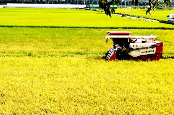 의령군은 추석 전 햅쌀을 판매 할 계획으로 18일 의령읍 무전리 이재욱씨(51세)농가의 논에서 햇 벼를 수확했다고 밝혔다.