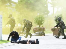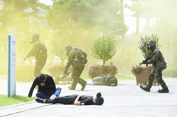 이날 훈련에는 시뿐만 아니라 32사단 화생방지원대, 세종시 경비단, 세종남부경찰서 및 경찰특공대, 세종소방서 등 유관기관에서 약 100여 명이 참가했다