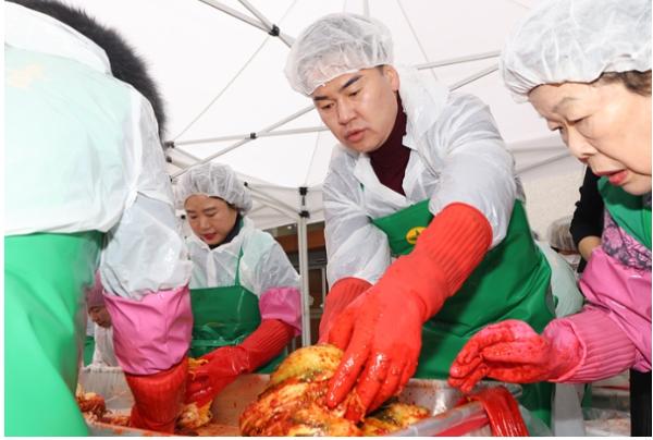 지난 27일 도봉구청 잔디광장에는 북한이탈주민, 국군 장병, 새마을 부녀회원 등 약 70여 명이 모였다. 이날 이웃을 위한 나눔 문화 실천을 위해 모인 이들은 궂은 날씨에도 불구하고 손수 준비한 절임배추에 양념을 버무리는 등 구슬땀을 흘렸다.