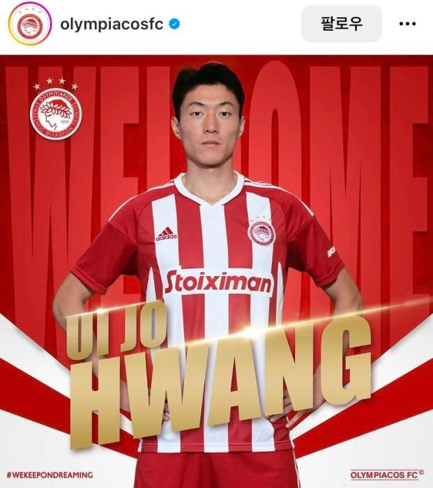 | 올림피아코스로 임대 이적한 황의조 (사진 : 올림피아코스FC) [인천=스포테이너즈] 국가대표 공격수 황의조(30)가 프랑스 리그1 보르도를 떠나 잉글랜드 프리미어리그 노팅엄 포레스트로 이적했다. 하지만 곧바로 그리스의 명문구단인 올림피아코스FC로 임대 이적하게 되어 황인범(26)과 한솥밥을 먹게 되었다. 올림피아코스FC 구단은 오늘(27일) 공식 SNS를 통해 황의조의 임대 영입 소식을 알렸다. 황의조는 홈구장인 요르요스 카라이스카키스 스타디움에서 새 팀의 유니폼을 입고 다양한 포즈를 취한 사진을 촬영하며 팬들에게 기대감을 심어주었다. |