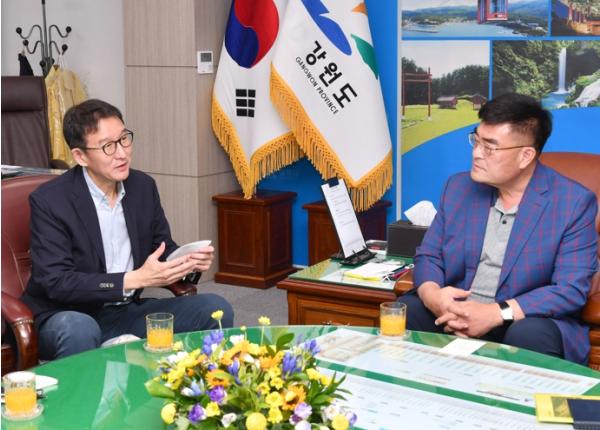 [스포츠와 엔터테인먼트의 만남 '스포테이너즈(SPORTAINERS)', 고초록기자] 박상수 삼척시장은 8월 27일 오후 2시 삼척시장실에서 GS에너지 주식회사 허용수 대표이사와 면담을 갖고, 수소산업을 비롯한 에너지사업과 대규모 관광단지 조성사업 참여에 대해 논의했다.
