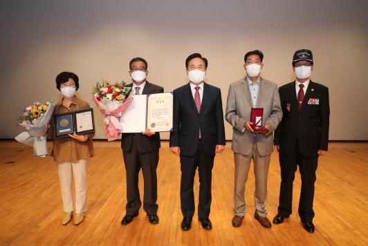 [스포츠와 엔터테인먼트의 만남 '스포테이너즈(SPORTAINERS)', 고초록기자] 안동시는 6.25전쟁에 참전해 무공을 세운 故윤용백 중위의 자녀 윤재권 씨에게 국방부장관을 대신해 무공훈장을 전수했다.