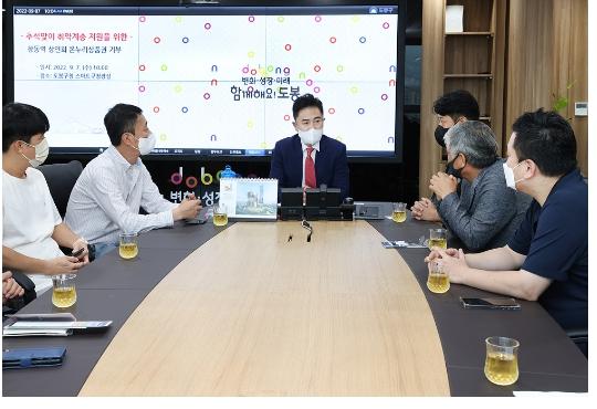 [스포츠와 엔터테인먼트의 만남 '스포테이너즈(SPORTAINERS)', 고초록기자] 도봉구는 2022년 9월 7일 창동역 상인회로부터 추석맞이 온누리 상품권 300만 원을 기부받고, 창동 기성상업지 활성화를 위한 임원진 간담회를 진행했다.