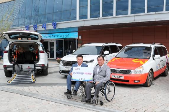 이날 전달된 교통약자 콜택시는 장애의 정도가 심한 장애인을 비롯한 65세 이상으로 버스 등의 이용이 어려운 시민, 일시적으로 휠체어를 이용해 버스를 이용하기 어려운 시민 등 교통약자 이동센터에 등록된 사람들을 대상으로 안정적인 승차감과 편리한 이동을 위해 특수 제작된 차량이다.