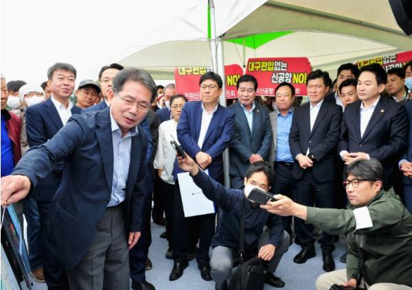 원희룡 장관은 대구 편입이 늦어지고 있다는 지적에 “군위군의 대구 편입은 이미 지자체 간 합의가 이루어진 사항”이라며 대구편입이 앞으로 더 원만하게 될 수 있도록 지원하겠다“면서 ”통합신공항 특별법도 이번 국회에 잘 통과돼서 차질없이 되도록, 주민들이 걱정하지 않도록 적극적으로 지원하겠다.“ 고 강조했다.