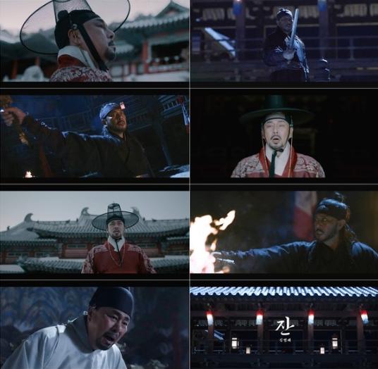 ‘Intro’에 이어 ‘잔(盞)’ 노래가 시작되자 궐에서 천천히 걸어 나오는 김법래는 용맹한 자태를 뽐낸다.