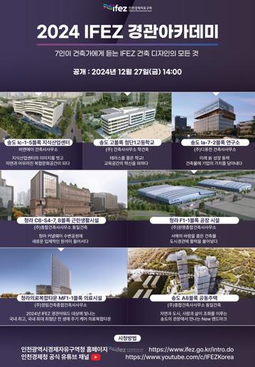 인천경제자유구역청은 우수한 건축디자인을 발굴하고 소개하는 ‘2024년 IFEZ 경관아카데미’를 오는 27일 오후 2시부터 공개한다고 밝혔다.