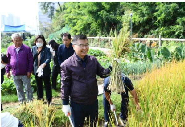류경기 중랑구청장은 “이렇게 중랑행복농장에서 주민분들과 함께 벼도 베고 흙을 만지며 힐링하는 시간을 가질 수 있어 기쁘다”라며 “앞으로 주민들이 도시농업을 다양하게 경험하고 여가 활동으로 즐길 수 있도록 상자텃밭 보급은 물론 체험 활동을 지속적으로 확대해 나가겠다”라고 말했다.
