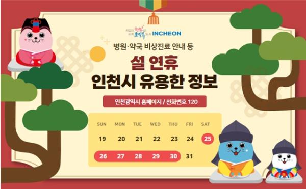 이외에도 22개 전통시장 주변 주정차 한시적 허용, 농축산물 도매시장 개장 정보, 문화예술 행사 등 설 연휴 기간 시민들에게 유용한 정보는 인천광역시 누리집에서 확인할 수 있다.