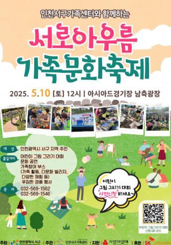 인천 서구가족센터는 다양한 가족이 함께 가꾸는 가족 존중을 실천하기 위해 오는 5월 10일 인천아시아드경기장 남측광장에서 ‘서로아우름 가족문화축제’를 진행한다고 밝혔다.