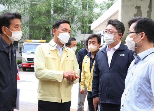 이후 세곡동 탄천 대왕교 하부의 복구 현장을 방문한다. 이곳은 지난 집중호우 때 저수호안(유수에 의한 침식으로부터 보호하기 위한 목적으로 하천 언덕 또는 제방 경사면이나 밑부분 표면에 시공하는 공작물)이 유실됐고 세월4교 난간이 무너진 곳으로 현재의 복구 상황을 확인할 계획이다.