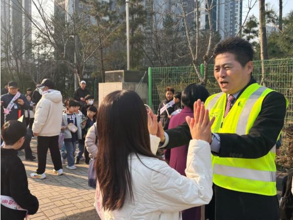 이날 김정헌 중구청장은 학교장, 교직원, 학부모들과 함께 등굣길 보행 지도 활동을 전개했다.