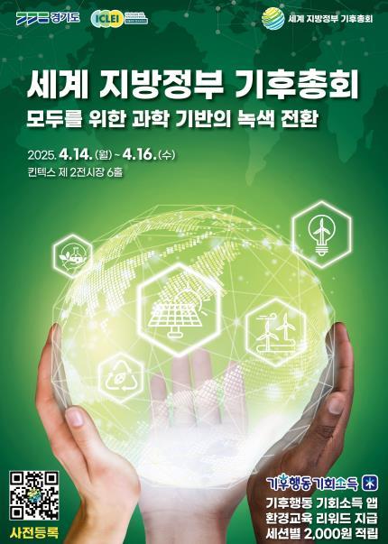 우선 14일부터 16일까지 고양시 킨텍스 제2전시장 6B홀에서 세계 지방정부 기후총회를 개최한다. 이는 파리협약에 따라 국가 온실가스 감축 목표가 갱신되는 2025년을 맞아 지방정부의 기후 대응 전략과 시민의 자발적 참여를 촉진하기 위한 국제적 담론의 장이다.