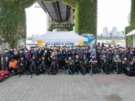 잠수장비를 착용한 잠수요원 10명은 뚝섬유원지를 중심으로 한강 수중에 쌓인 각종 쓰레기와 오염물을 수거하는 작업을 펼쳤다.