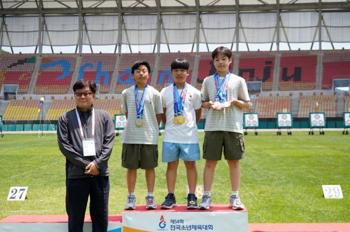 | | 12세 이하 남자부 (왼쪽부터) 양가온, 신동주, 박서준 / 제공: 대한양궁협회 |