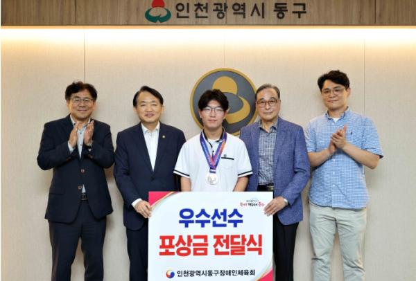 인천 동구장애인체육회는 제19회 전국장애학생체육대회에서 우수한 성적으로 입상한 학생과 학교 지도자를 초대해 축하하고 격려했다고 밝혔다.