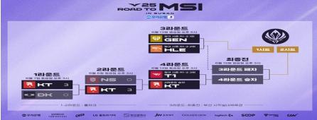 올해 처음으로 개최하는 '2025 리그 오브 레전드 챔피언스 코리아 미드 시즌 인비테이셔널(2025 LCK MSI)' 대표 선발전은 정규시즌 상위 6개 팀이 참여해 '1위 결정전과 킹 오브 더 힐을 혼합한 방식으로 진행되며, 6개 팀 중 1~2라운드에서 탈락한 2팀을 제외한 총 4개 팀이 사직실내체육관에서 미드 시즌 인비테이셔널(MSI)에 진출할 최종 2개 팀이 되기 위해 마지막 승부를 펼치게 돼 그 결과에 이스포츠 팬들의 관심이 집중되고 있다.