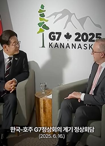 주요 7개국(G7) 정상회의 참석차 캐나다 카나나스키스를 방문 중인 이재명 대통령은 16일 오후(현지시간) 앤소니 알바니지 호주 총리와 정상회담을 가졌다.