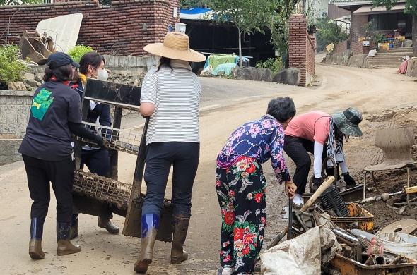 복구 현장에 배치된 참가자들은 더운 날씨에도 소매를 걷어붙이고 피해 집중 지역에 투입돼 배수작업, 침수가구 청소 및 정리 등 복구에 온 힘을 쏟았다.
