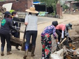 홍성군 공직자들이 청양군 장평면 호우피해 복구에 구슬땀을 흘렸다.