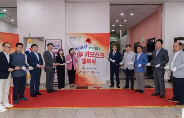 연수구가 지난 20일 구청 1층 송죽원에서 ‘기부 키오스크 제막식’을 개최하고 인천 최초로 기부 키오스크 운영을 시작한다.