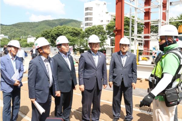 행사 준비 상황 보고와 주요 인프라 시설 조성 현장 안내를 맡은 김상철 경상북도 APEC 준비지원단장은 “APEC 유치 확정과 동시에 도 예비비를 활용해 기본구상 및 실시설계에 바로 착수했으며, 건축 T/F를 구성해 행정절차 단축 등 신속한 대응을 통해 미디어센터, 만찬장 등 주요 인프라 시설 공사가 예정대로 진행 중에 있다”며 “안전과 품질을 최우선으로 하면서도, 필요시 휴일, 야간 시공 등을 통해 9월 중에 모든 공사를 완공해 내겠다”고 강조했다.