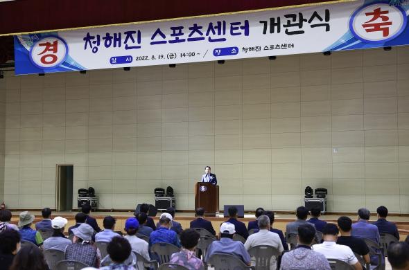 완도군은 8월 19일 군민 건강 증진과 생활 체육 활성화를 위해 건립한 청해진 스포츠센터 개관식을 개최했다.