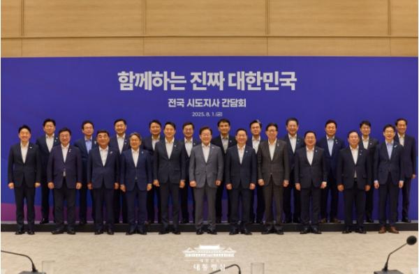 강 대변인은 또 "시도지사들은 한목소리로 한미 관세 협상의 성공적인 마무리를 축하하며 감사의 뜻을 전했다"고 소개했다.