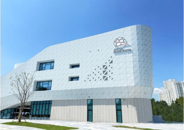 덕진구 혁신로 일원에 조성된 전주국제드론스포츠센터는 지난 2021년부터 4년간 총사업비 146억 원이 투입돼 연면적 3980㎡에 지상 3층 규모로 지어졌으며, 다가오는 전주드론축구월드컵의 주경기장으로 활용될 예정이다.
