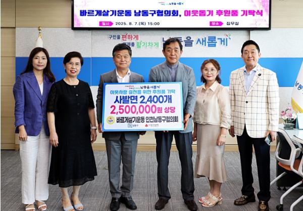 한편, 바르게살기운동 인천남동구협의회는 밝고 건강한 국가, 사회건설에 이바지하는 것을 목적으로 하는 국민운동단체로, 롤화장지, 봉지 김, 계절 김치 등 다양한 후원품을 꾸준히 기부해 이웃들을 위한 나눔을 이어나가고 있다.