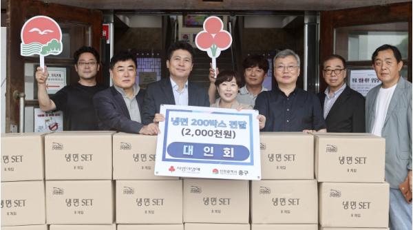 인천시 중구는 인천 지역 사업주 대표들의 모임인 ‘대인회(회장 임형택)’에서 지역 내 어려운 이웃을 위해 사용해 달라며 냉면 200박스(200만 원 상당)를 기부했다고 8일 밝혔다.
