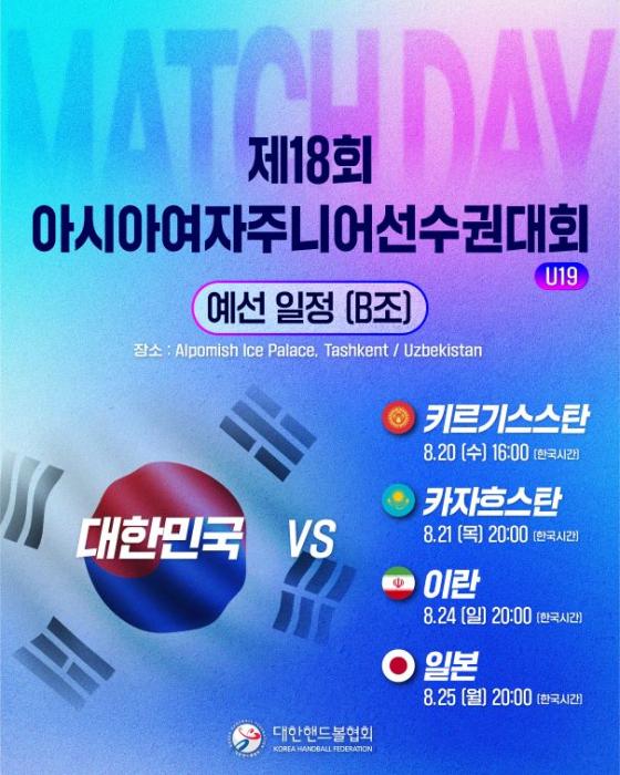 대표팀은 이번 대회에서 B조에 속해 조별리그를 치른다. 한국시간 기준 20일 오후 4시 키르기스스탄과의 경기를 시작으로, 21일 오후 8시 카자흐스탄, 24일 오후 8시 이란, 25일 오후 8시에는 일본과 맞붙는다.