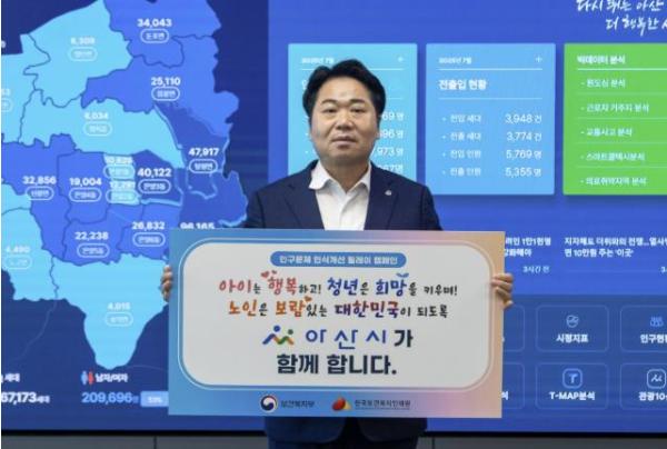 오세현 아산시장이 20일 저출생과 고령화 등 인구문제에 대한 사회적 관심을 높이기 위한 ‘인구문제 인식개선 릴레이 캠페인’에 동참했다.