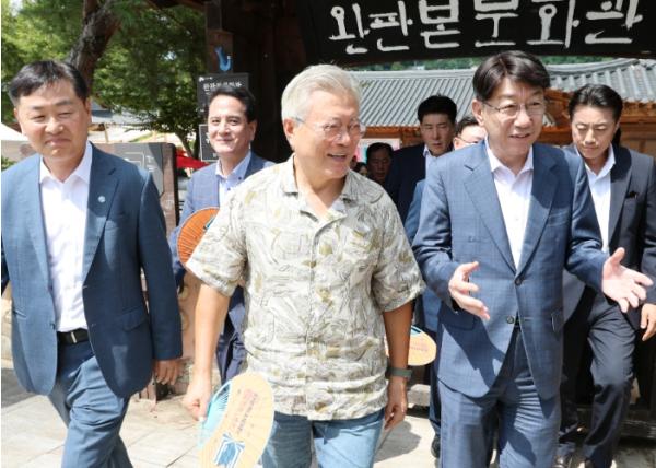 문 전 대통령은 우범기 전주시장과 김관영 전북특별자치도지사 등과 함께 행사장에 마련된 부스 및 체험장을 돌면서 책의 도시 전주를 알리기 위해 진행되는 독서대전 분위기를 고조시켰다.