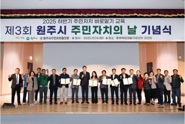 원주시와 원주시주민자치협의회는 지난 14일 동부복합생활지원센터 공연장에서 ‘제3회 원주시 주민자치의 날 기념식’을 개최했다.