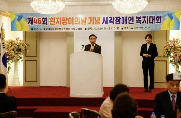 김문근 단양군수는 축사를 통해 “흰지팡이가 상징하는 용기 있는 독립과 자주적인 삶의 가치를 되새기며, ‘건강한 단양, 살고 싶은 단양’을 만들기 위해 모두가 함께하는 따뜻한 공동체를 이뤄가겠다”고 말했다.