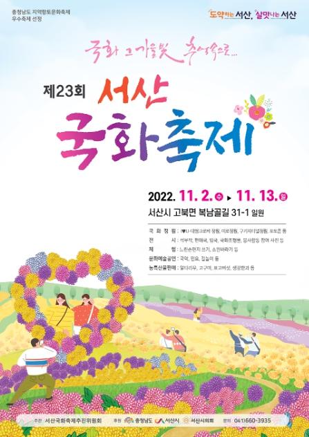서산시와 서산국화축제추진위원회는 11월 2일부터 13일까지 서산시 고북면 복남골길 일원에서 ‘제23회 서산국화축제’를 개최한다고 27일 밝혔다.