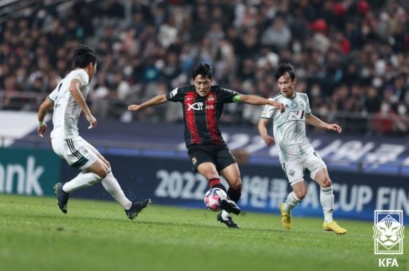 서울은 27일 홈구장 서울월드컵경기장에서 열린 전북과의 2022 하나원큐 FA CUP 결승 1차전에서 2-2 무승부를 거뒀다. 서울이 기성용과 조영욱의 연속골이 터지며 2-0으로 앞서갔으나, 전북이 전반 43분 바로우의 만회골, 전반 추가시간 조규성의 페널티킥 동점골로 균형을 이뤘다. 후반에는 양 팀이 난타전을 벌였으나 득점은 나오지 않았다.