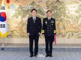 이재명 대통령은 3월 27일 서울 용산 국방부에서 김경률 신임 해군참모총장에게 삼정검 수치를 수여했다.