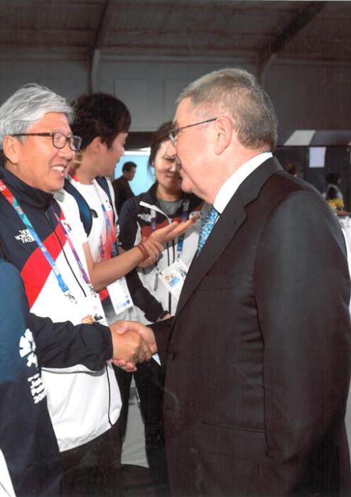 2009년부터 아시아산악연맹 회장을 맡아 아시아 국가 간 협력 강화와 국제산악연맹과의 관계 증진에도 힘써왔으며, 한국인 최초로 국제산악연맹 명예회원으로 추대되었다.