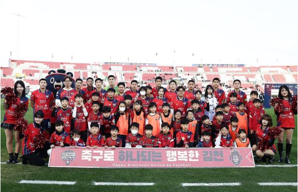 김천상무는 오는 강원전 다양한 연간 이벤트로 홈팬을 맞이한다. 먼저 ‘나만의 베스트 일레븐’ 이벤트에서 유니폼 스티커북과 함께 박태준, 민경현 스티커를 증정한다. 베스트 일레븐을 완성 후 마지막 홈경기 당일 응모 시 추첨을 통해 선수단 친필사인 공인구와 케이스를 받을 수 있다.