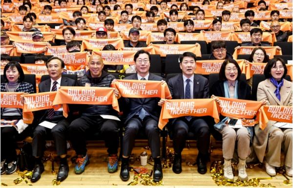 이날 출정식에는 정명근 화성특례시장(화성FC 구단주), 배정수 화성특례시의회 의장, 도·시의원, 박종선 화성시체육회장 등 주요 내빈과 시민들 700여명이 참석해 구단의 새 출발을 축하했다.