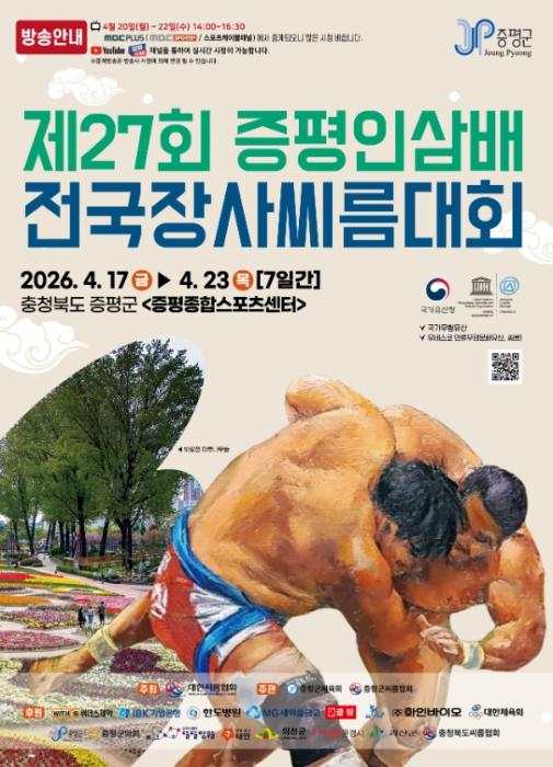 군 관계자는 “씨름은 우리 민족의 오랜 전통을 담은 스포츠이자 힘과 기술, 예의와 품격이 어우러진 소중한 문화유산”이라며 “인삼과 씨름의 고장 증평에서 열리는 이번 대회가 현장을 찾는 관람객은 물론 방송과 온라인으로 시청하는 많은 국민에게도 큰 즐거움을 선사하길 바란다”고 말했다.