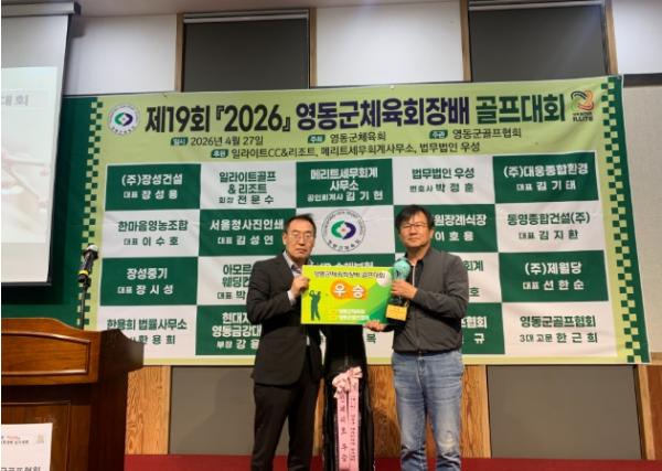 영동군체육회가 주최한 이번 대회는 이번에 새로 회장이 취임한 영동군골프협회(회장 장성용)가 주관했으며, 별도의 개회식 없이 시상식 중심으로 진행돼 동호인 간 경기 결과를 축하하고 화합을 다지는 뜻깊은 자리로 마련됐다.